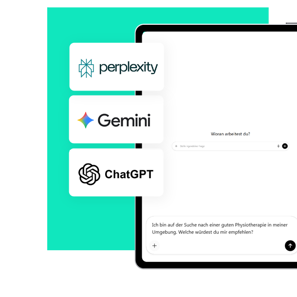 Genau wie Internetnutzer, die mittlerweile nicht mehr nur Googlen, sondern fertige Antworten auf komplexe Fragen suchen, sind auch die Anbieter von SEO-Analyse-Tools auf den KI-Zug aufgesprungen. Diese Veränderung können wir gemeinsam zu Ihrem Vorteil nutzen. Im Rahmen unseres GEO-Service erstellen wir Ihnen detaillierte Berichte zu Ihrer Perfomance in ChatGPT, Perplexity und Co. Die Berichte machen für Sie sichtbar, für welche Themen Ihre Website bereits gefunden wird und in welchen Bereichen es noch Luft nach oben gibt. Die Ergebnisse bereiten wir so auf, dass Sie datenbasierte Entscheidungen treffen können, die langfristig Wirksamkeit zeigen.