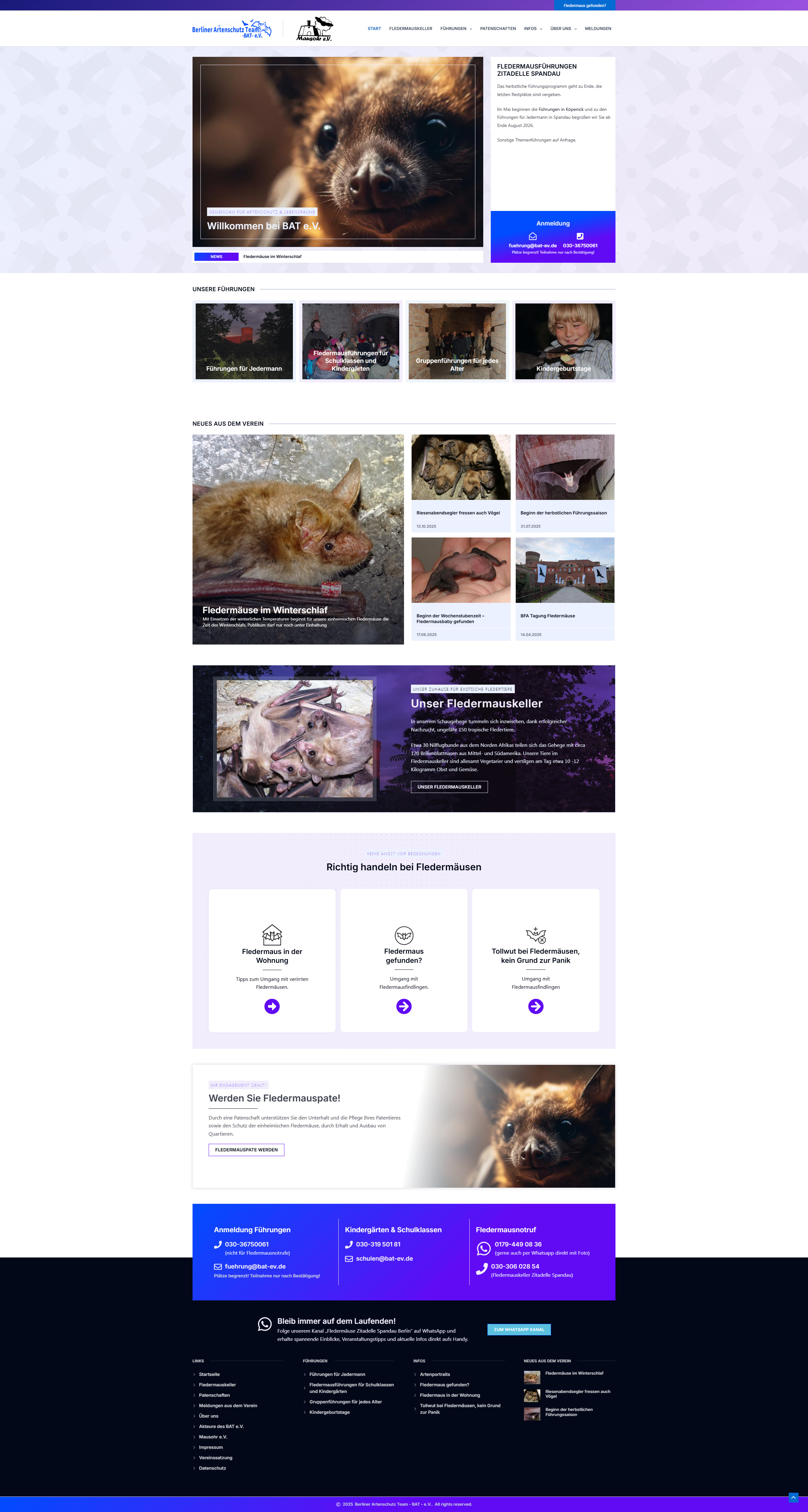 Das Berliner Artenschutz Team – BAT – e.V. ist ein Verein zum Schutz von Fledermäusen. Die ehrenamtlichen Mitglieder arbeiten seit der Gründung im Jahr 2002 in der Zitadelle Spandau mit Führungen, Pflegestation und Patenschaften am guten Ruf der Fledermäuse.